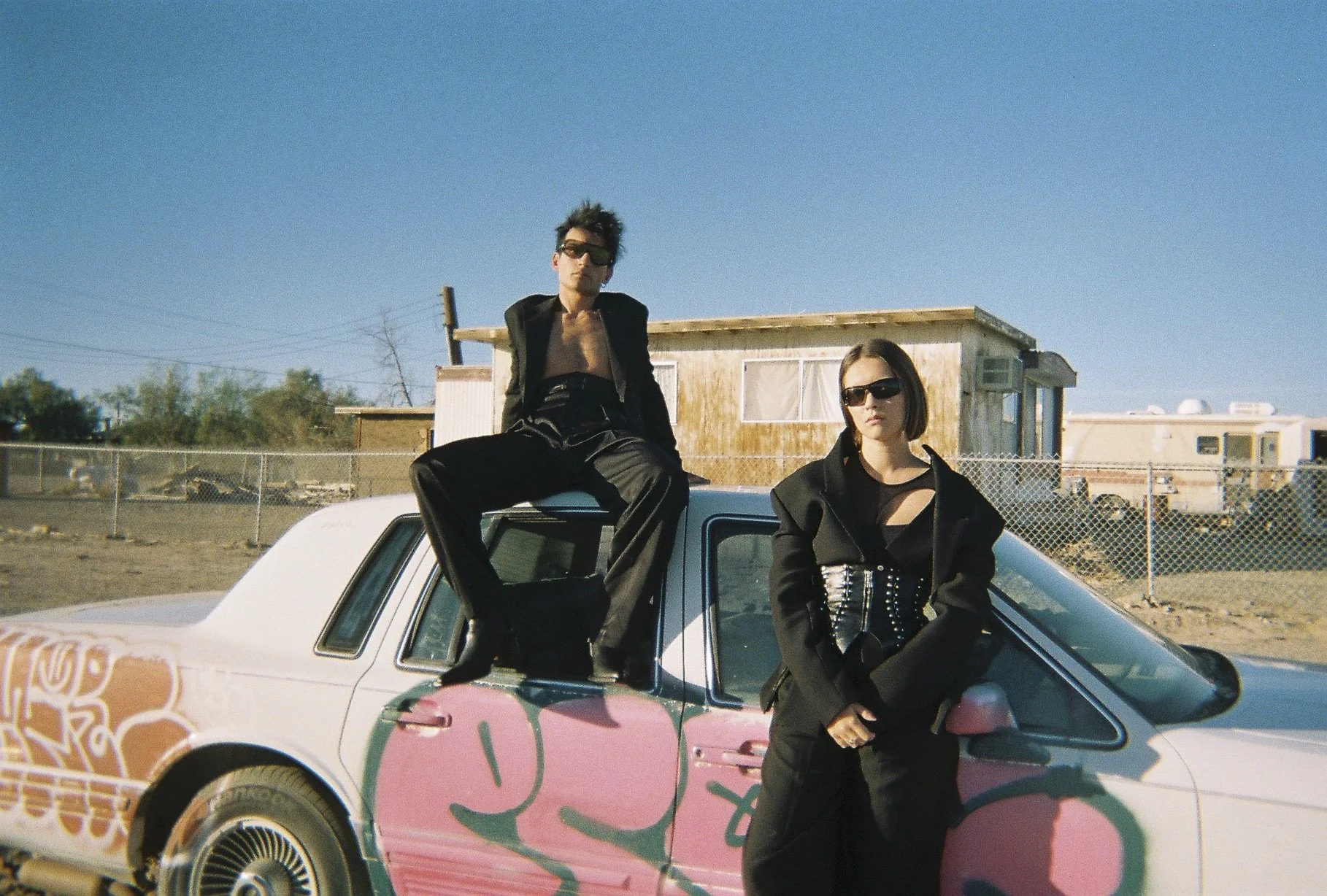 In November, 2023, The Parisian Gennre Band team crossed the Atlantic, and jetted over the American ‘Great Plains’ before touching town in the City of Angels to film their second music video debut. The heart of Los Angeles’ visual aesthetic is the epitome of youthful rebellion, which Gennre did not shy in exploring through punk rock sounds and indie-sleeze imagery. ‘Highschool Sweethearts Forever’ music video features Los Angeles based models and creatives . Cast by MERDE Agency, directed by Phantom x Etienne Baret and produced by Camille Razat of Tazar Productions, the Paris/LA collaboration manifested from global unique friendships and a love for blending sound and scenes. Anna Sofia’s monophonic vocals cultivate a sensual yet scary character juxtaposed to Etienne Baret’s timid and yearning turned wild persona. In the video, the two bandmates are filmed in desolate and caustic landscapes. A car set aflame, a desolate skatepark, dry hilltops of the valley. Meanwhile, the camera transitions to a parallel storyline of debaucherous teenagers breaking and entering, stealing cards, finding love, culminating in the sand and stars of Venice Beach.