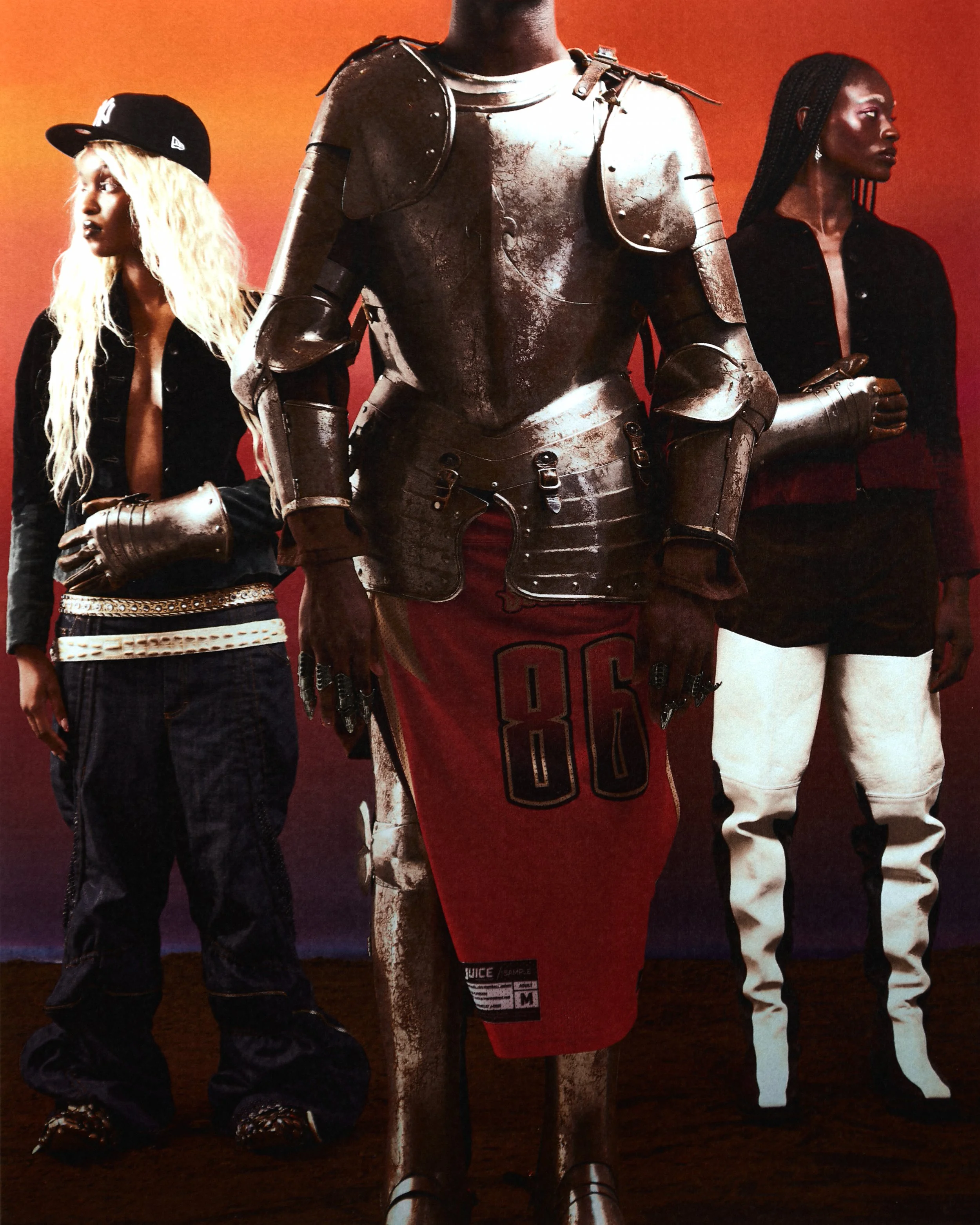 This photo series honors the transgender identity that we associate with the term "HOOD-MEDIEVAL," representing for us the merging of two completely opposite epochs and cultures that were never supposed to intersect. In short, the photos portray a creative fusion of two distinct cultures, celebrating the beauty and diversity of humanity throughout history."