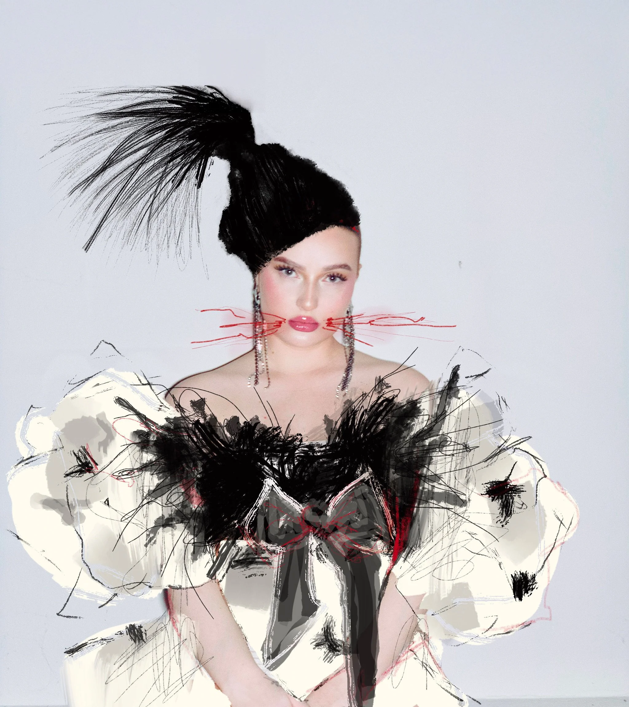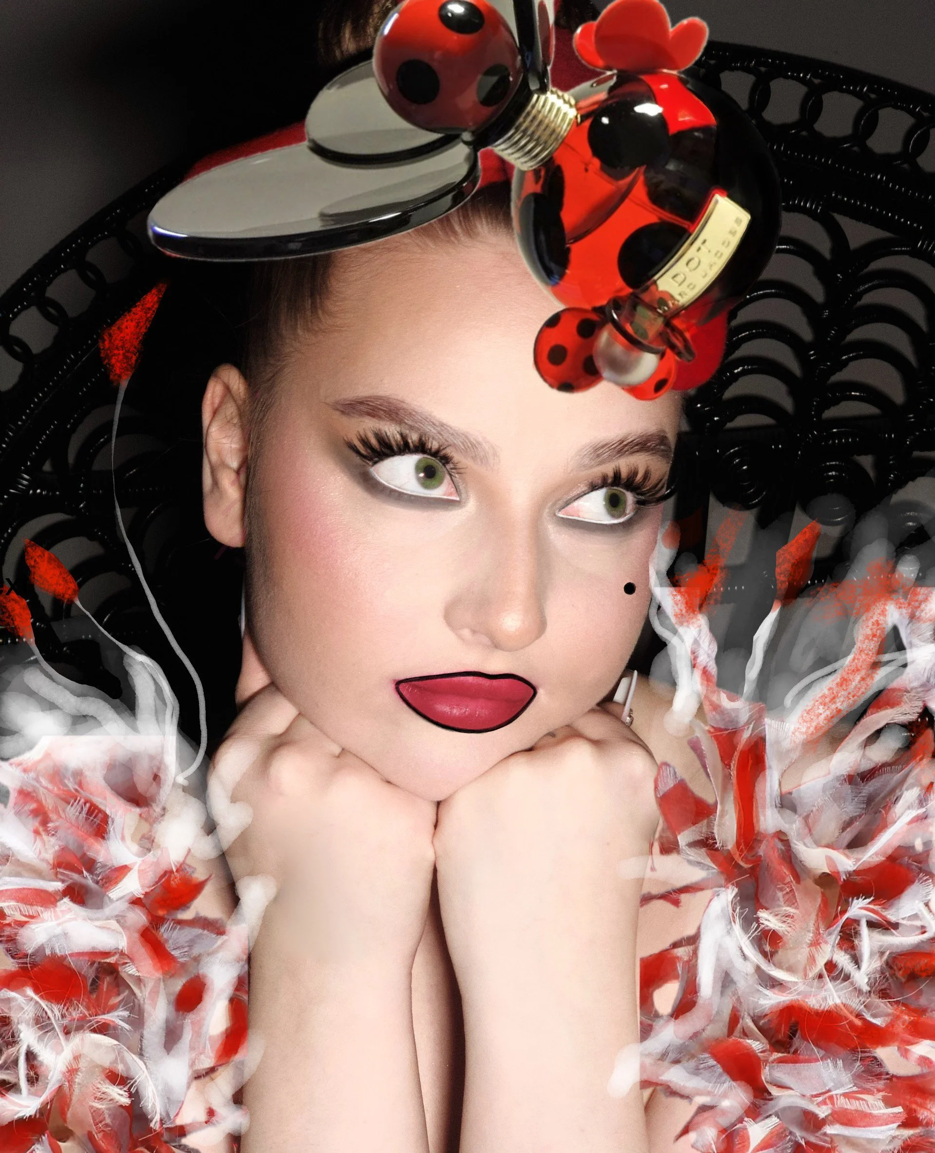 perfume as hat: MJ DOT, dress: MJ Spring 2018