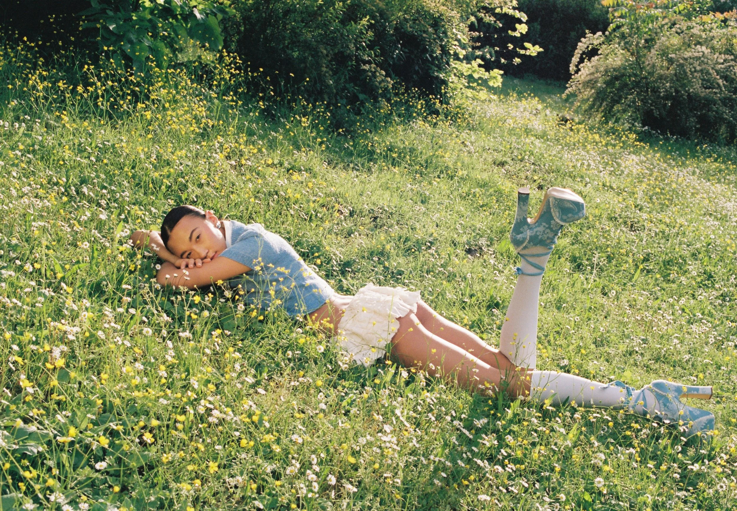 Top and shoes: Andrea Di Giulio Skirt: Miu Miu Socks and earrings: stylist’s own
