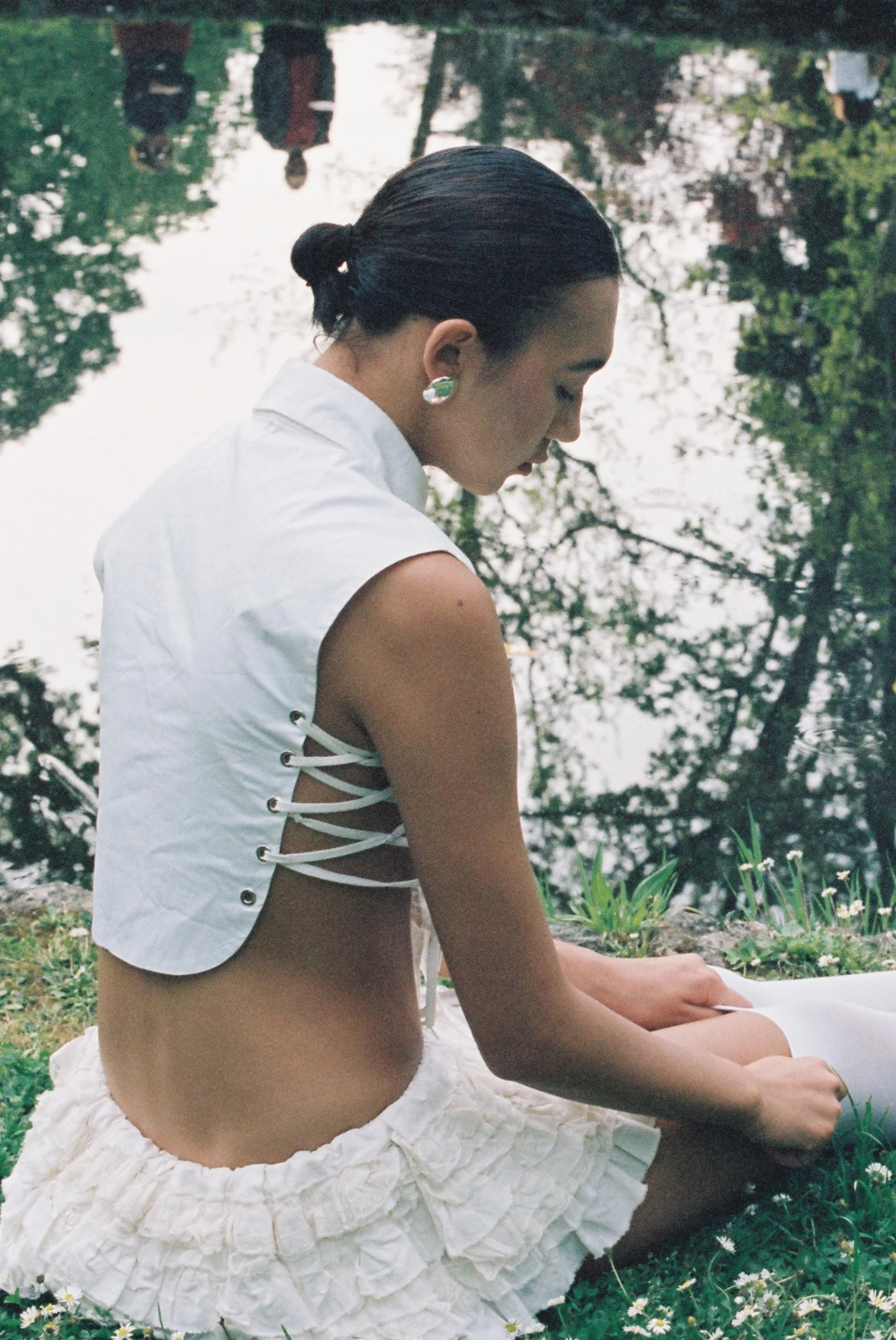 White shirt: Andrea Di Giulio Skirt: Miu Miu Shoes: Vi