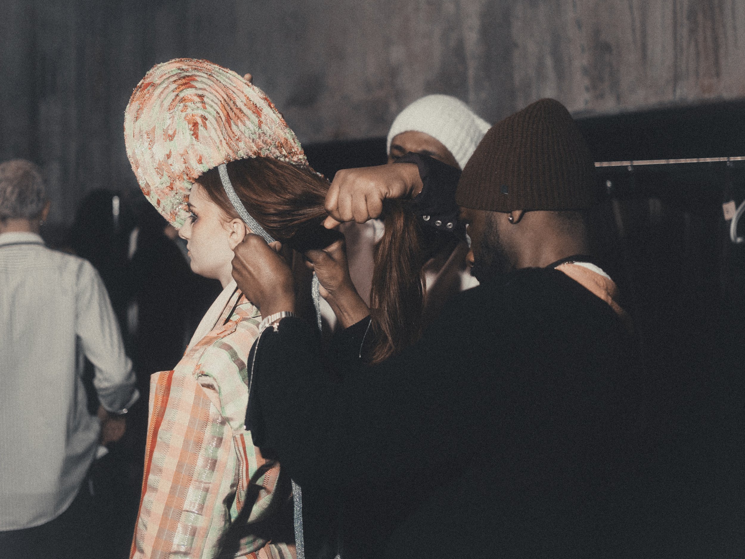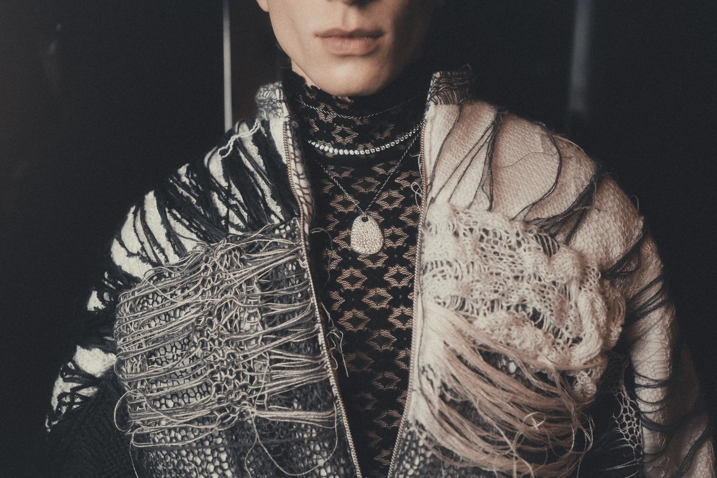GMBH reminded us why Berlin still matters. In a season where the industry’s support systems seem the utmost uncertain, their show brought the community together as armor. John Lawrence Sullivan looked like the afterparty of a party no one remembers throwing. Haderlump brought rough warmth with open knits, leathery layers, and buttoned-up but cool pieces. Kenneth Ize brought color like a frost-bitten flushed cheek, not apologizing for being joyful in a place that feels like it’s spent a decade in cryo-therapy. That mischievous joy spilled into DannyReinke, where feathers, beads, and tulle teased out giggles you weren’t supposed to laugh along with, but did anyway.. Jagger really wished us all the best with featured sexy Shakespearen wings for their deubt show featuring models cradeling cheeky ice cold beers. Ioannes brought back some softness. Minimal but magnetic, elegance flirting with drama.